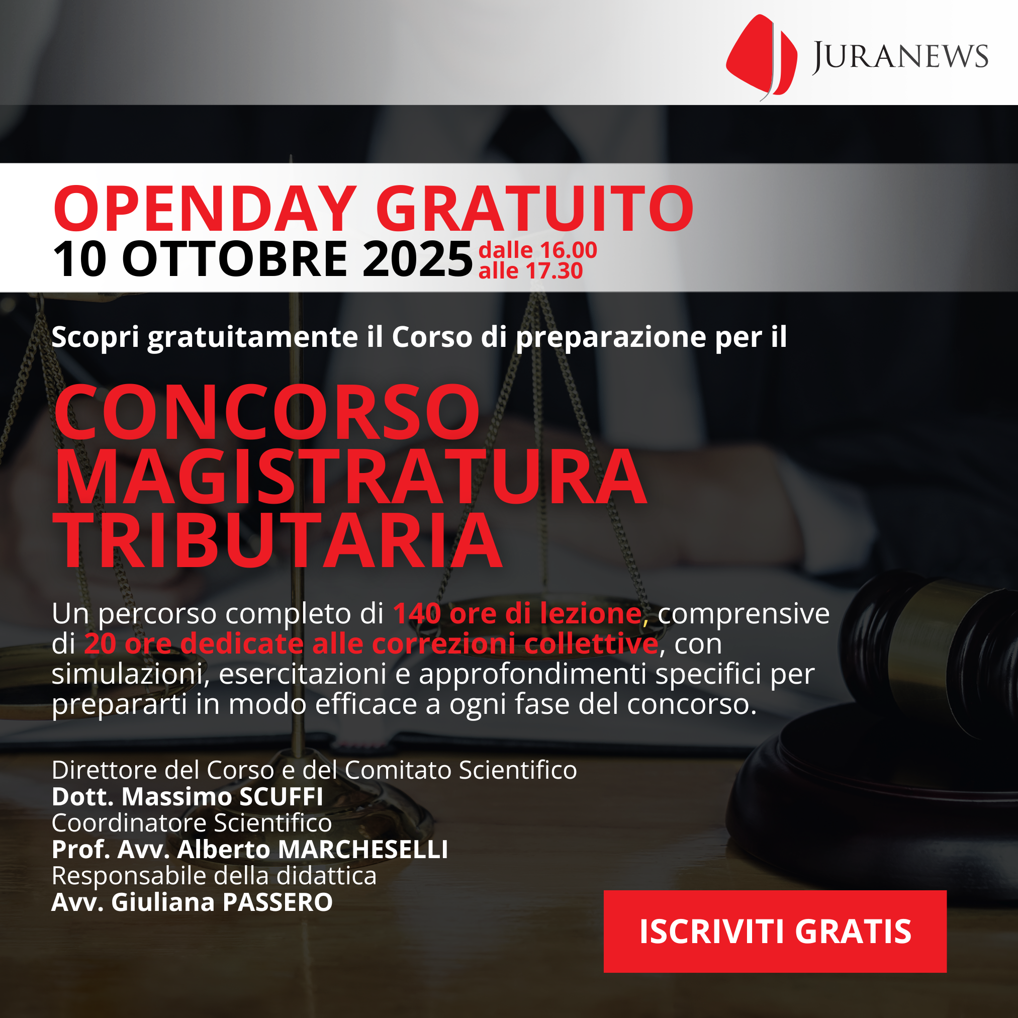 Corso di Formazione per il Concorso per l’accesso alla Magistratura Tributaria Il concorso sarà bandito con decreto del MEF e avrà luogo, con ogni probabilità, nel 2026. Un percorso completo di 140 ore di lezione, comprensive di 20 ore dedicate alle correzioni collettive, con simulazioni, esercitazioni e approfondimenti specifici per prepararti in modo efficace a